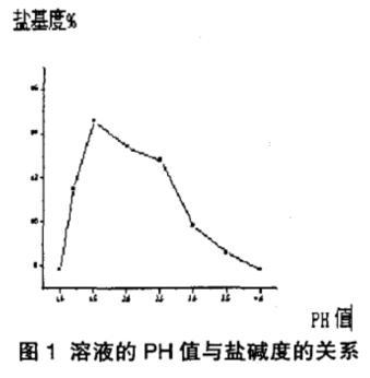 堿化度又稱(chēng)鹽基度,是影響聚合硫酸鐵穩(wěn)定性和混凝性能的一個(gè)重要指標(biāo),其大小與溶液酸度密切相關(guān)。堿化度由下式定義:B=[OH-]/[1/3Fe+]×100%,在pH值增高的情況下,產(chǎn)品的堿化度和聚合度增大,有利于聚合硫酸鐵在廢水處理過(guò)程中混凝能力的增強(qiáng)。但在產(chǎn)品堿化度提高的同時(shí),其穩(wěn)定性也隨之降低。制備聚合硫酸鐵時(shí),堿化度大小可通過(guò)加人硫酸的量來(lái)控制。溶液的PH值與鹽堿度的關(guān)系如下圖1所示。