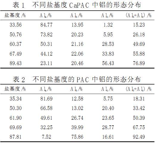 不同鹽基度PAC和CaPAC中鋁的形態(tài)分布